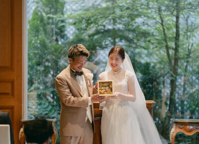 とにかくゲストの皆さんに感謝の気持ちを伝えたい、という思いで準備を進めてきました。当日はゲストの方たちと幸せな時間を過ごすことができ、また、ゲストの方たちからも「素晴らしいスタッフの方たちとお料理で、今までに見たことのない素晴らしい式だった」と仰っていただきました。またひとつ私たちの思い出の場所が増えたことがとても嬉しいです。記念日にはレストランにお伺いしたいと思います。