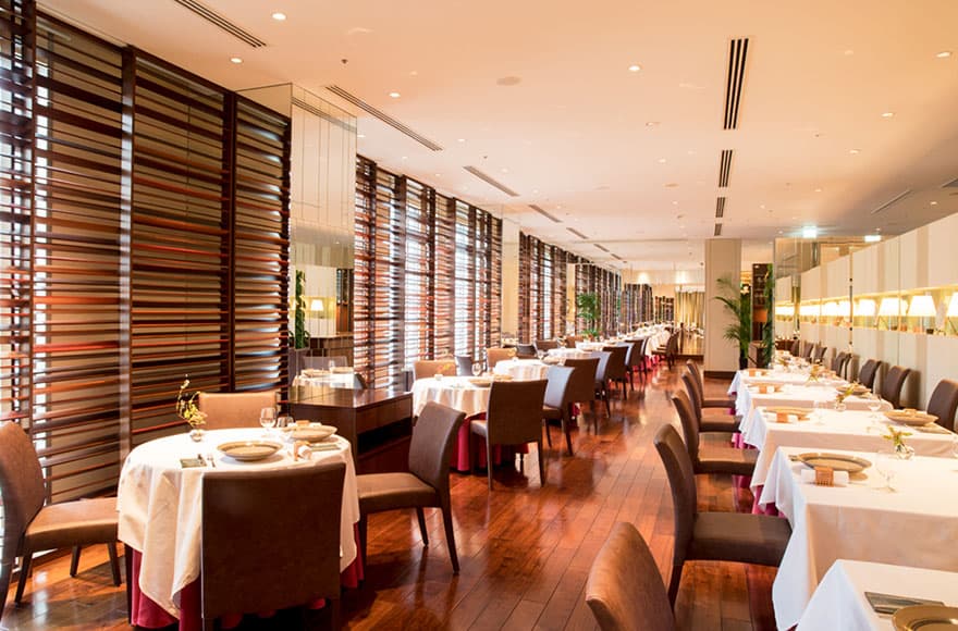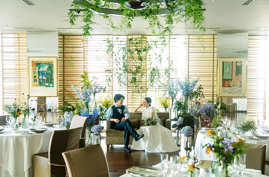 窓から降り注ぐ陽光が明るく開放感のあるパーティサロン。